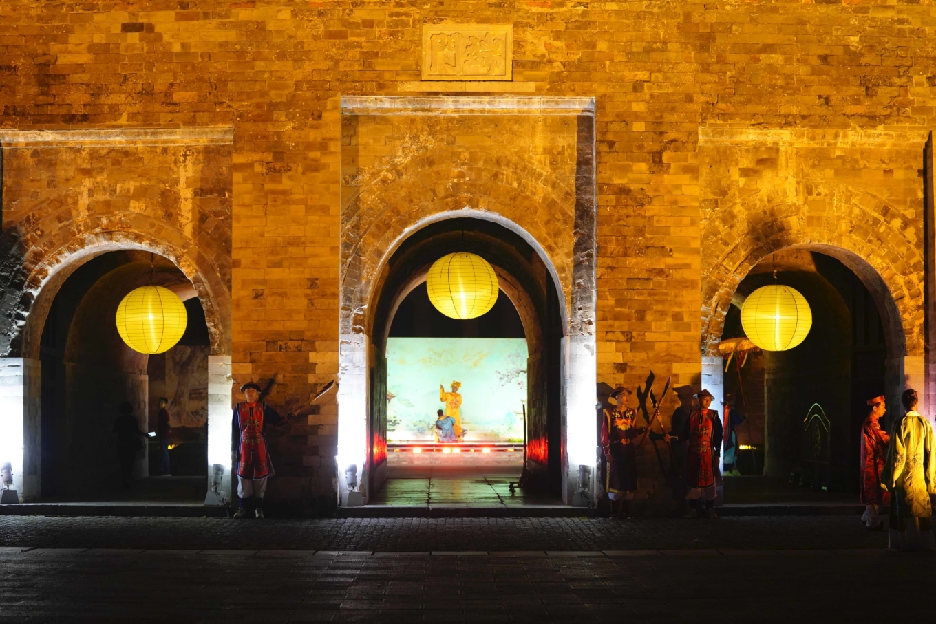 Hoàng Thành Thăng Long rực rỡ về đêm. Ảnh: Phạm Chiều