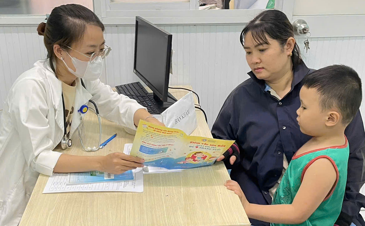 Tiêm vaccine ngừa sởi cho trẻ tại trạm y tế ở quận 10. Ảnh: Trung tâm Y tế quận 10