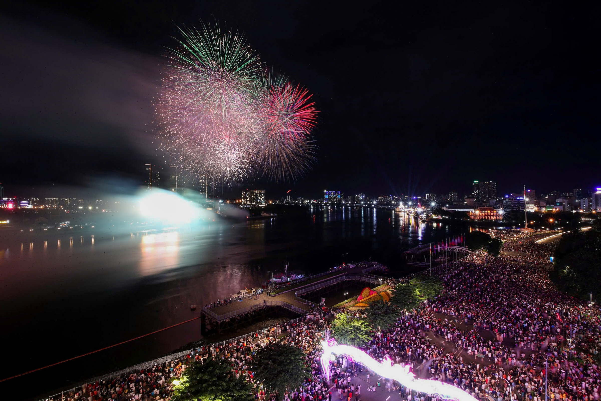 Pháo hoa mừng Quốc khánh trên sông Sài Gòn,ngày 2/9. Ảnh: Quỳnh Trần