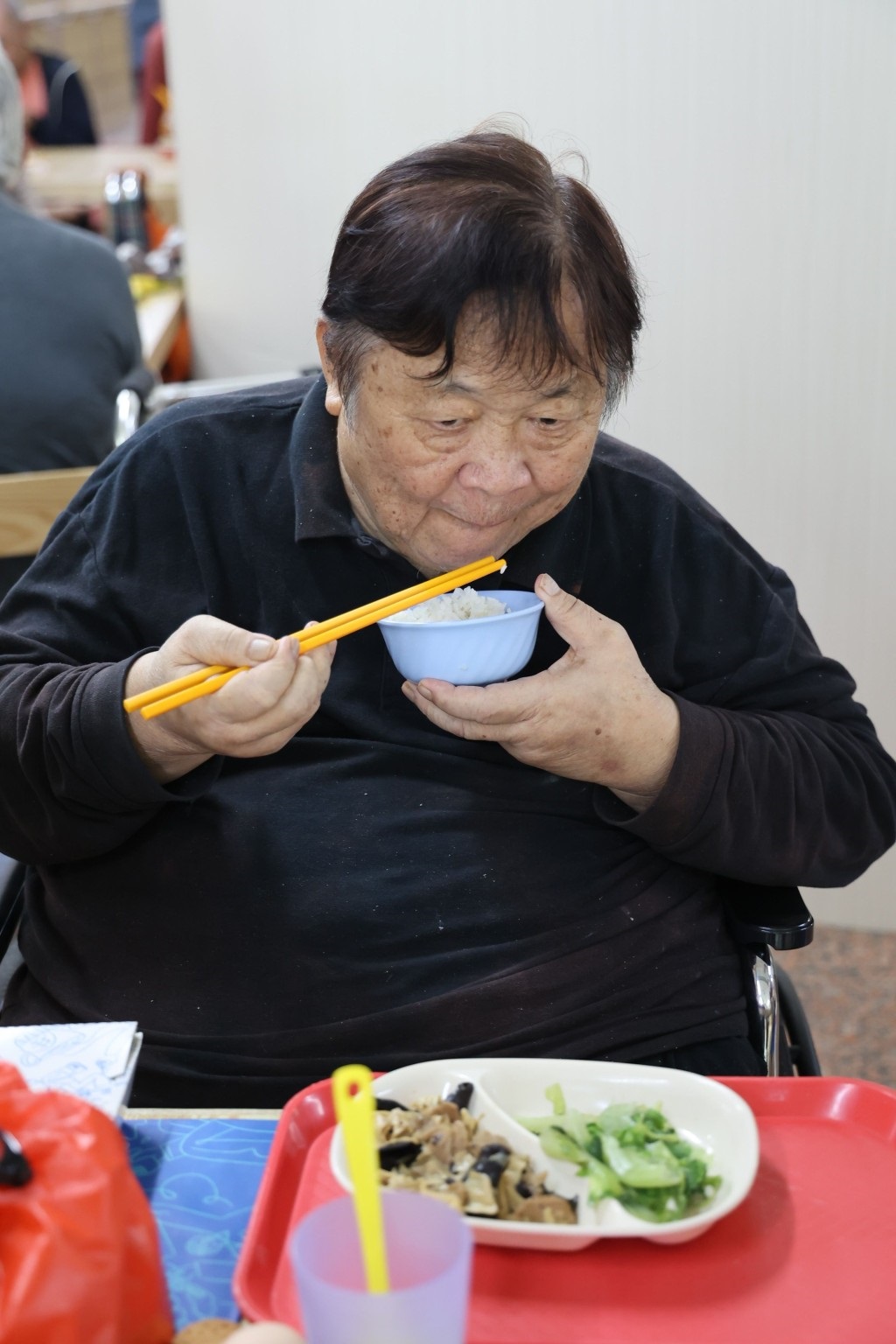 Tần Hoàng hài lòng với đồ ăn ở viện dưỡng lão. Ảnh: St Headline