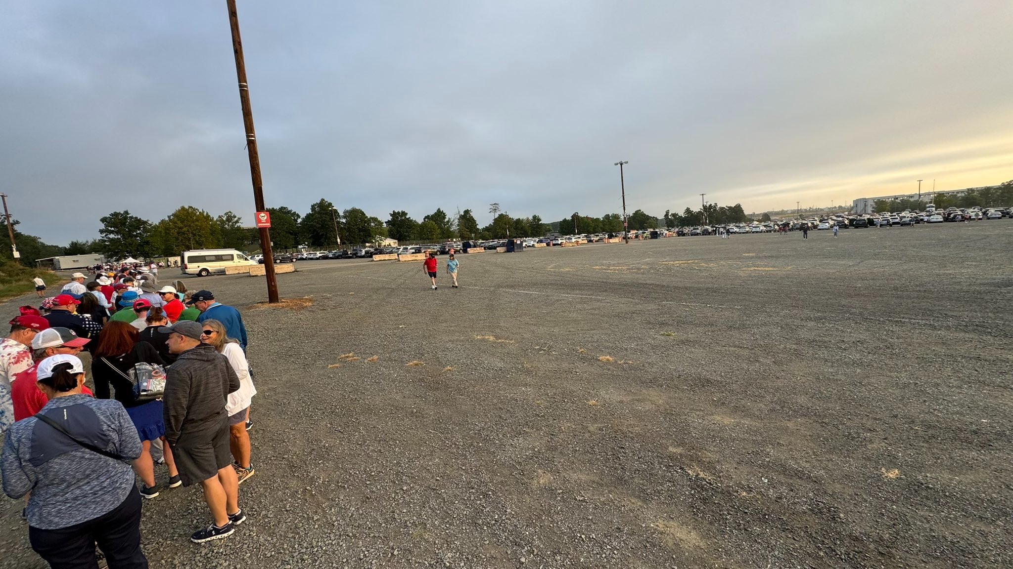 Khán giả xếp hàng chờ lên xe trung chuyển đến sân đấu của Solheim Cup ngày 13/9. Ảnh: X / Bill Belcher