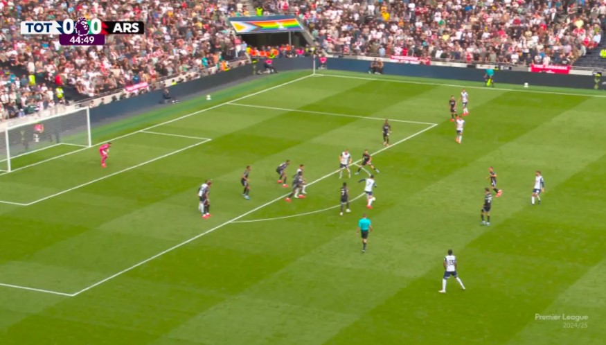So với hiệp một,các tiền đạo của Arsenal chạy vào khoảng trống phía sau hàng hậu vệ Tottenham nhiều hơn,và các đồng đội cũng đá trực diện hơn. Một trong những tình huống đó đã dẫn đến bàn thắng. Quả phạt góc mà Gabriel ghi bàn tới từ pha phản công,khi Havertz cắt bóng và các đồng đội lao nhanh về phía trước.