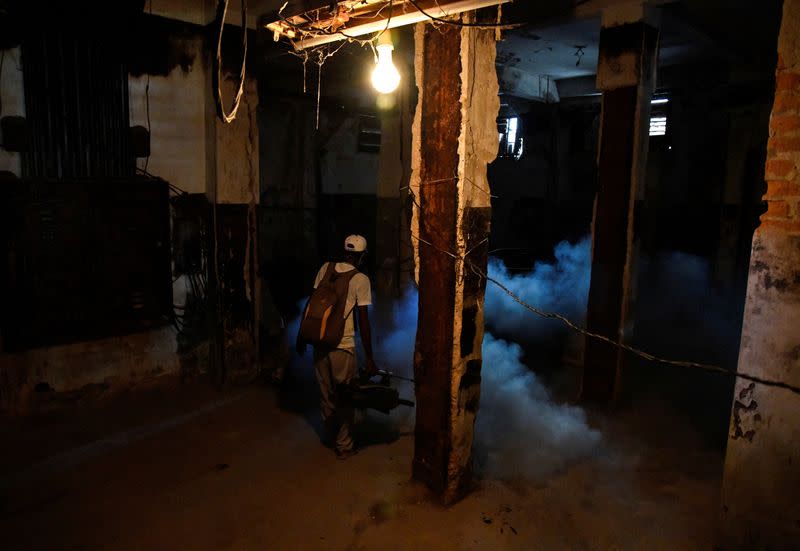 Một nhân viên y tế tại Cuba phun thuốc diệt muỗi ở thủ đô La Havana. Ảnh: Reuters