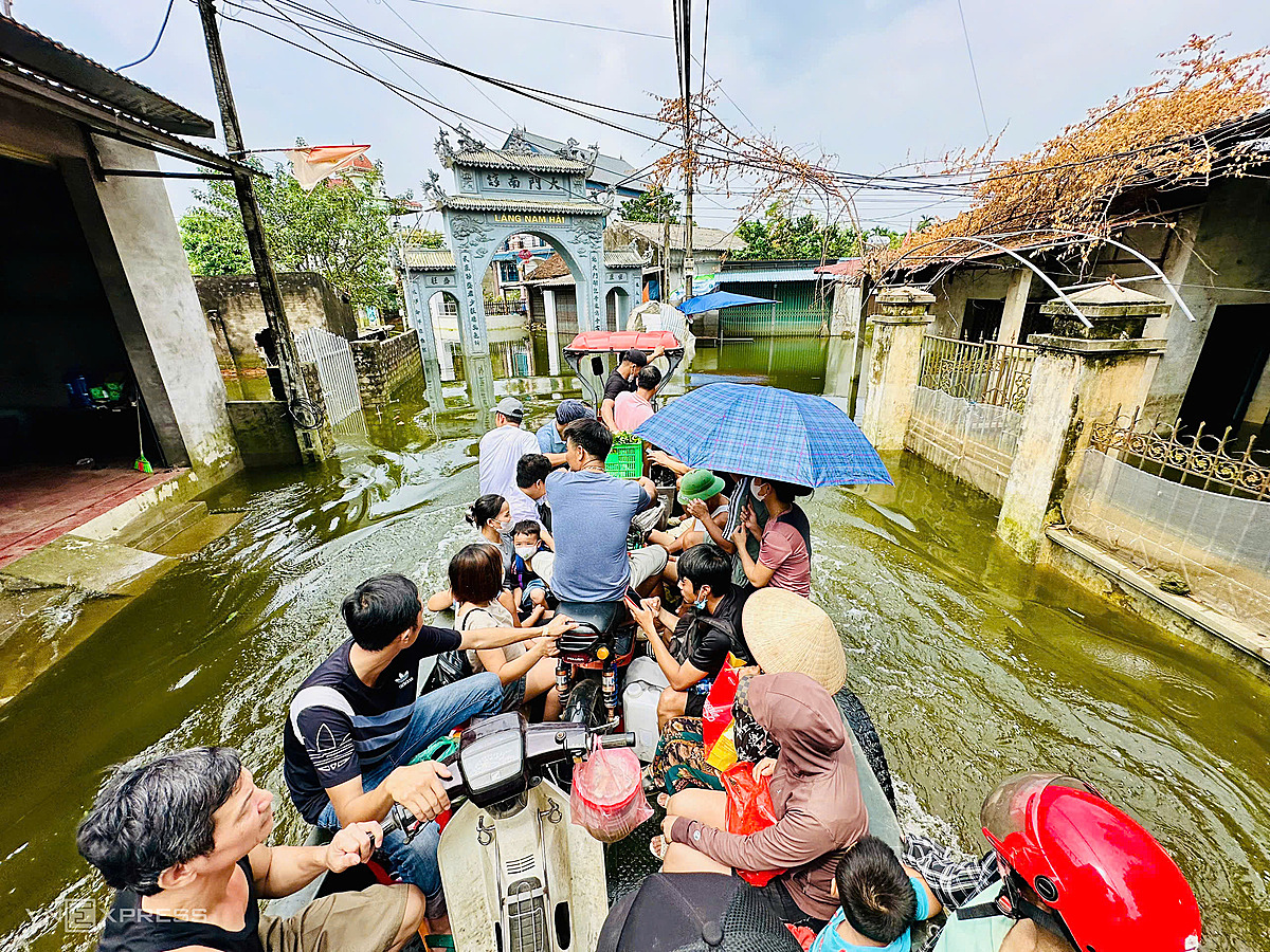 Ngày 21/9,tròn hai tuần sau khi bão Yagi vào miền Bắc và gây mưa lớn,con đường chính dẫn vào xã Nam Phương Tiến,huyện Chương Mỹ qua các thôn Nam Hài,Nhân Lý,Hạnh Bồ vẫn ngập. Người dân phải sử dụng thuyền cá nhân và xuồng do chính quyền bố trí.