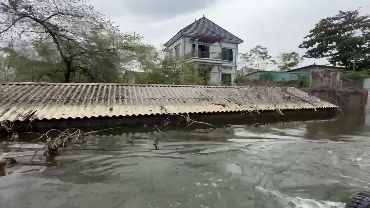 Sáng 21/9,người dân phải di chuyển bằng xuồng trên đường qua xã Nam Phương Tiến. Video: Gia Chính