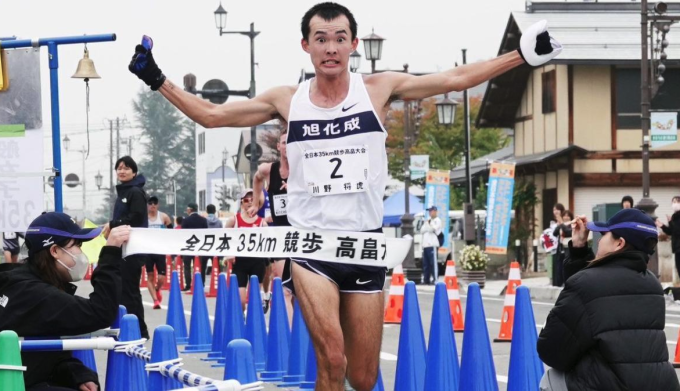 Masatora Kawano về nhất nội dung đi bộ 35km ở giải All Japan Race Walking hôm 27/10. Ảnh: World Athletics
