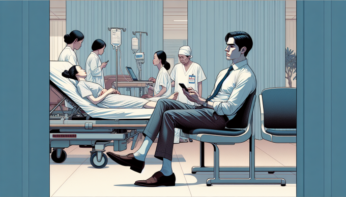 Hồi tôi sinh con,dự án do chồng làm chủ nhiệm đang trong giai đoạn gấp gáp nhất. Tôi vỡ ối nửa đêm,không tiện báo cho ngoại và cậu mợ,chồng tự đưa tôi vào phòng sinh. Anh ngồi trong phòng chờ làm việc luôn. Sáng sớm cậu chở ngoại vô trông chừng tôi,anh ra sảnh bệnh viện,kêu phụ tá và đối tác mang hồ sơ tới ký. Mọi người bảo: "Lần đầu tiên thấy ký bản vẽ ở bệnh viện phụ sản".