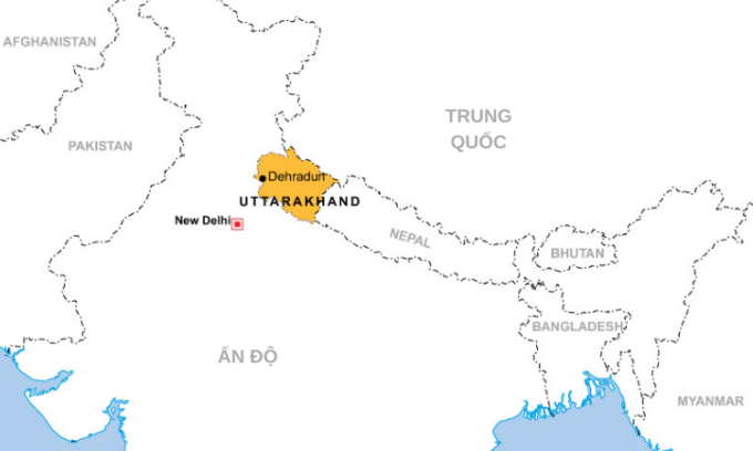 Vị trí bang Uttarakhand ở miền bắc Ấn Độ. Đồ họa: TOI