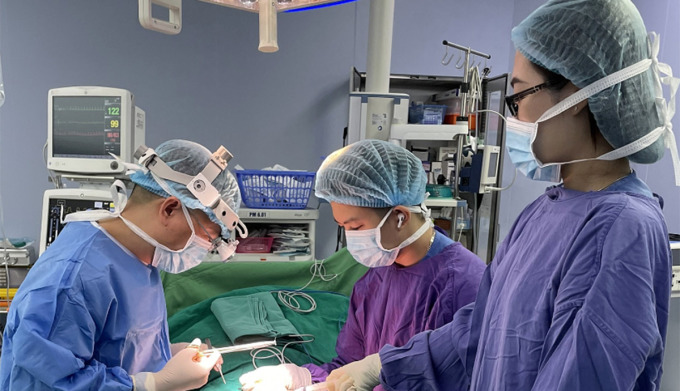 Các bác sĩ phẫu thuật nối bộ phận sinh dục cho bệnh nhân. Ảnh: Bệnh viện cung cấp