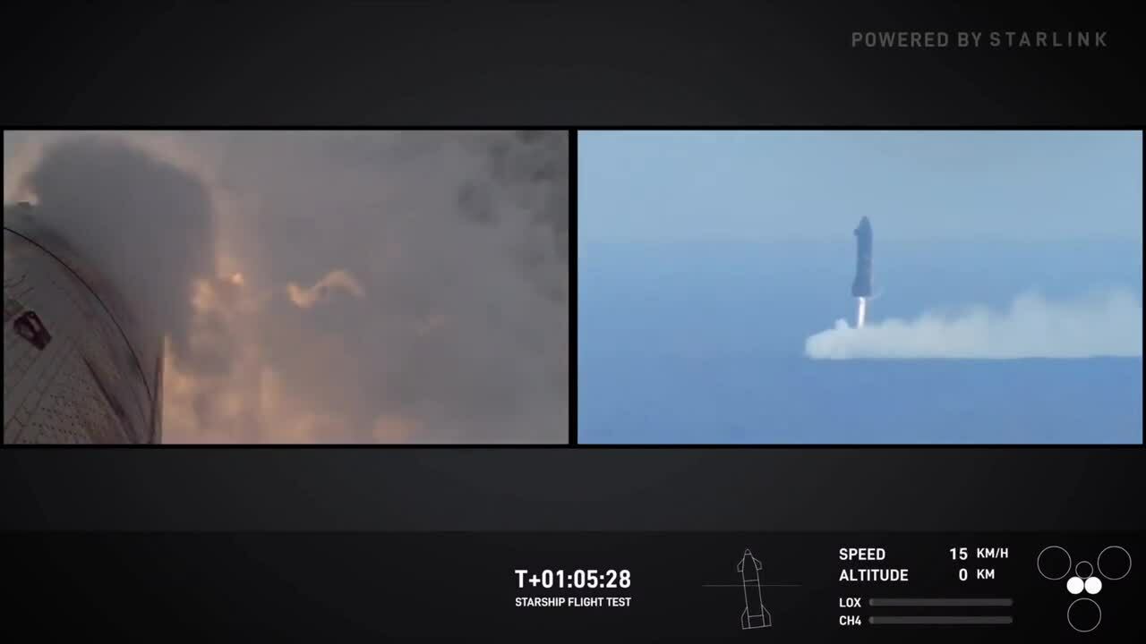 Tầng đẩy của Starship hạ cánh xuống Vịnh Mexico và phát nổ. Video:NASASpaceflight