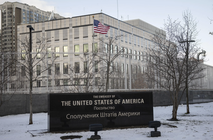 Đại sứ quán Mỹ tại thủ đô Kiev của Ukraine vào tháng 2/2022. Ảnh: AP