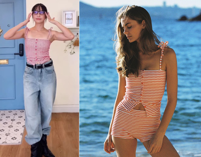 Áo tắm có thể kết hợp quần jeans hoặc chân váy ngắn. Ảnh: Surfea