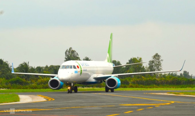 Tàu bay của hãng Bamboo Airways tại sân bay Cà Mau hồi tháng 4/2023. Ảnh: An Minh