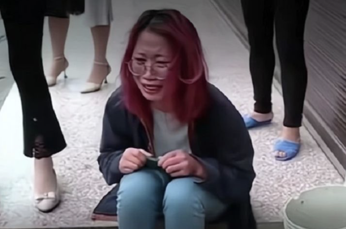 Li Xie ngồi khóc trên đường phố ở Hồ Nam cuối tháng 11 khi biết chồng muốn ly hôn. Ảnh: Hunan Urban TV