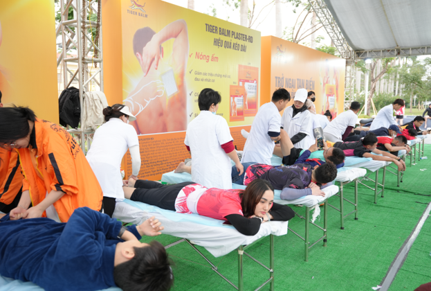 Runner Minh Thu (Hà Nội),thường xuyên luyện tập,thi đấu marathon,đã quen thuộc các sản phẩm của Tiger Balm. Ghé khu vực giãn cơ để kích hoạt trước và phục hồi sau race là thói quen của cô mỗi lần đi giải. Còn anh Hoàng Nam,lần đầu tiên trải nghiệm cùng Tiger Balm cho biết ấn tượng bởi mùi hương và công thức thảo dược độc đáo.