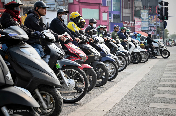Người dần dừng chờ đèn đỏ ở Hà Nội,ngày 2/1/2025. Ảnh: Giang Huy
