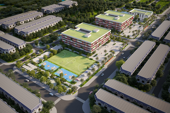 Phối cảnh trường trường Phổ thông Liên cấp FPT Long An gồm bậc tiểu học,THCS và THPT. Ảnh: FPT