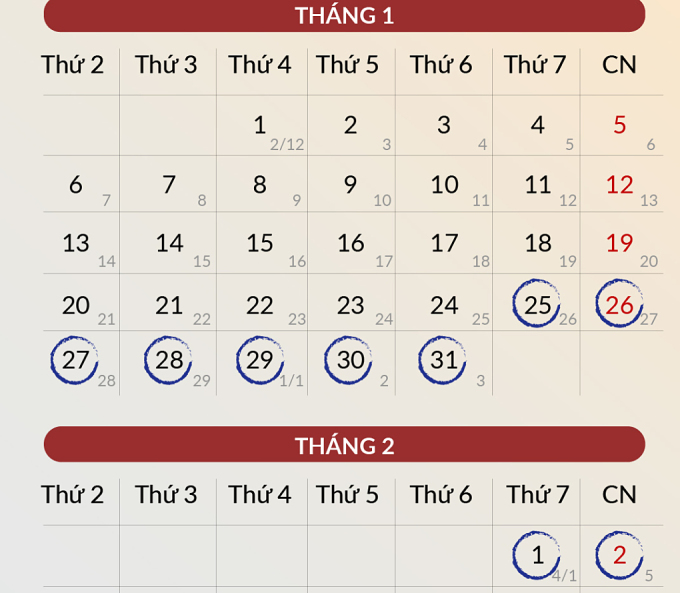 Lịch nghỉ Tết Ất Tỵ. Đồ họa: Đăng Hiếu