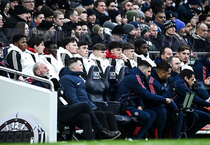 Các cầu thủ dự bị của Man Utd (áo khoác trắng) trong trận thua Tottenham 0-1 ở vòng 25 Ngoại hạng Anh ngày 16/2. Ảnh: BR