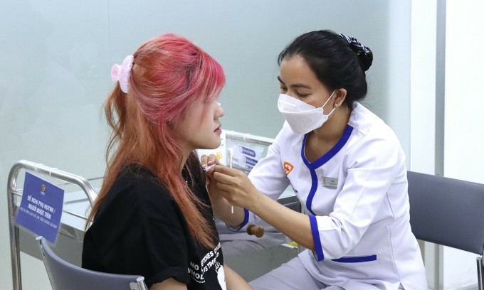 Người trẻ tiêm phòng cúm tại VNVC Hoàng Văn Thụ. Ảnh: Bình An