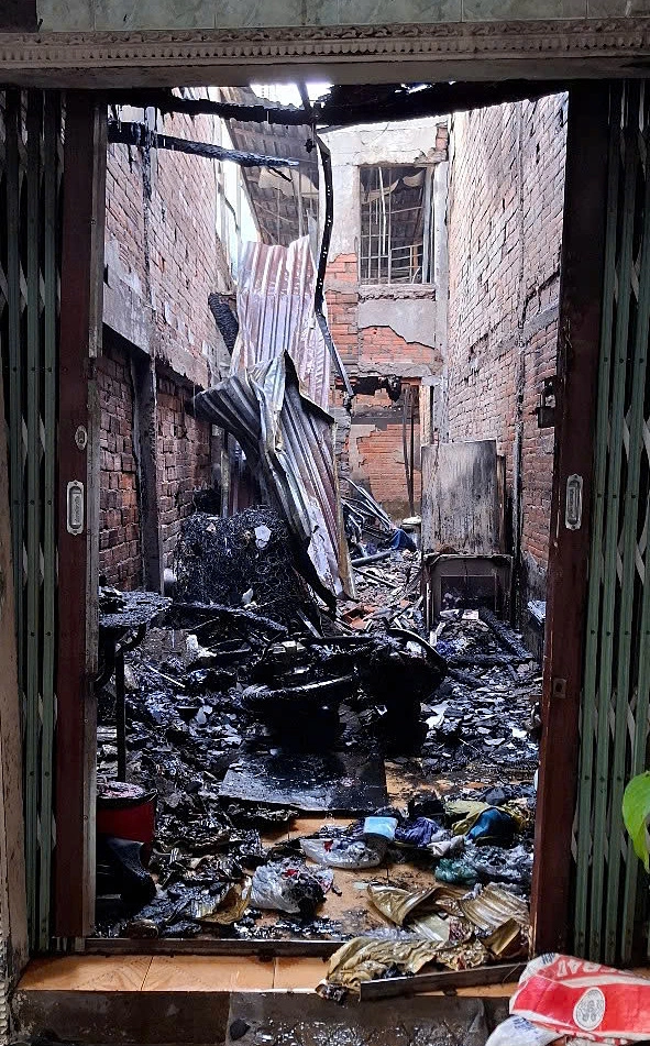 Căn nhà cháy có bề ngang hẹp. Ảnh: Công an Tiền Giang