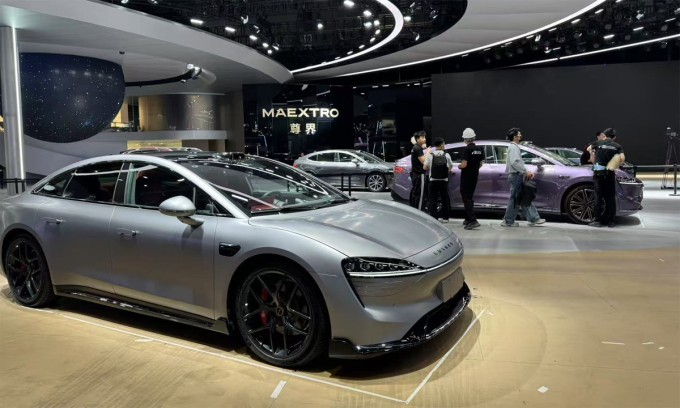 Xe trưng bày tại gian hàng Maextro - thương hiệu hợp tác giữa Huawei và JAC - trong khuôn khổ triển lãm Thượng Hải. Ảnh: Electric Sensei