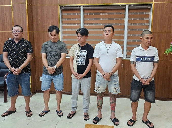 Các nghi phạm tại cơ quan công an. Ảnh: Thành Anh