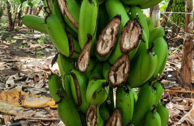 "Số chuối hư hỏng khoảng 20 tấn,với giá bán 14.000 đồng/kg,thiệt hại ước tính hàng trăm triệu đồng",ông Minh nói,cho biết do chuối hư hỏng quá nhiều,gia đình không thể đóng thùng xuất khẩu vào tuần này như kế hoạch.