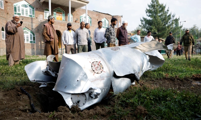 Vật thể dường như là bộ phận của máy bay tại Jammu và Kashmir hôm 7/5. Ảnh: Reuters