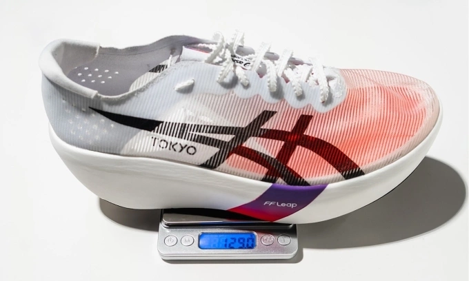 Cân nặng thực tế của một chiếc Asics Metaspeed Ray được blogger Ashley Mateo kiểm tra. Ảnh: X / Ashley Mateo
