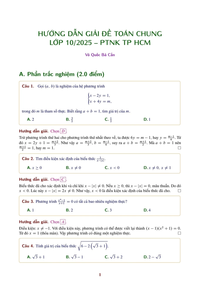 Xem lời giải đề Toán chuyên