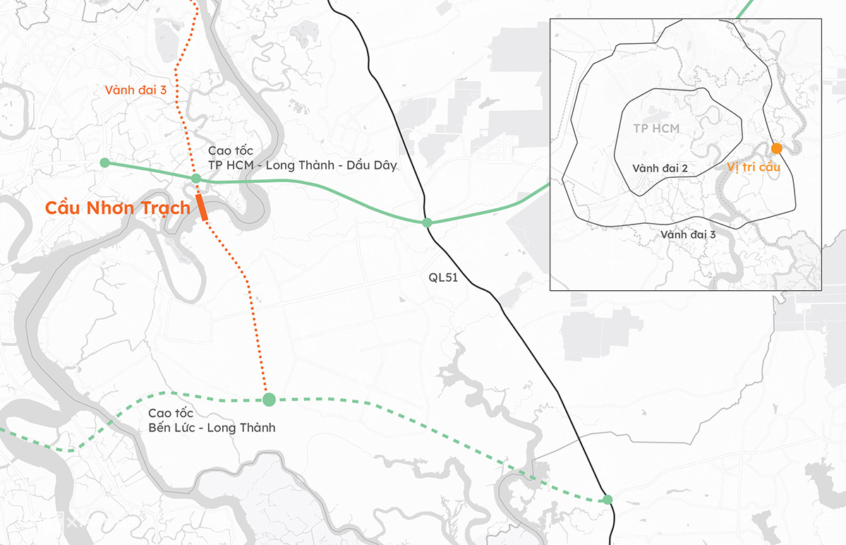 Cầu Nhơn Trạch giúp kết nối các tuyến đường lớn trong khu vực. Đồ họa: Khánh Hoàng