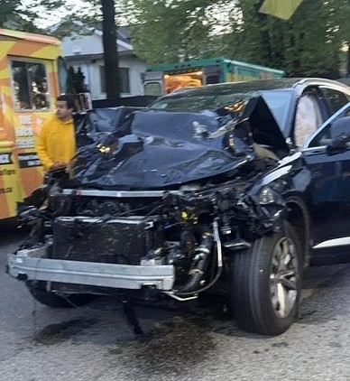 Chiếc SUV màu đen bị hư hại nặng sau khi lao vào đám đông. Ảnh: X/SLCScanner