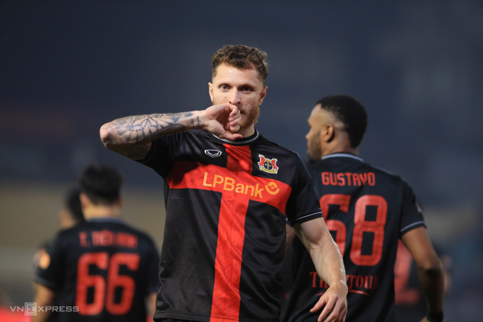 Tiền đạo CLB Ninh Bình Geovane Magno thi đấu trong trận thua Công an Hà Nội 2-3 ở vòng 12 V-League 2025-2026,trên sân Hàng Đẫy ở Hà Nội ngày 1/2/2026. Ảnh: Hoàng Huynh