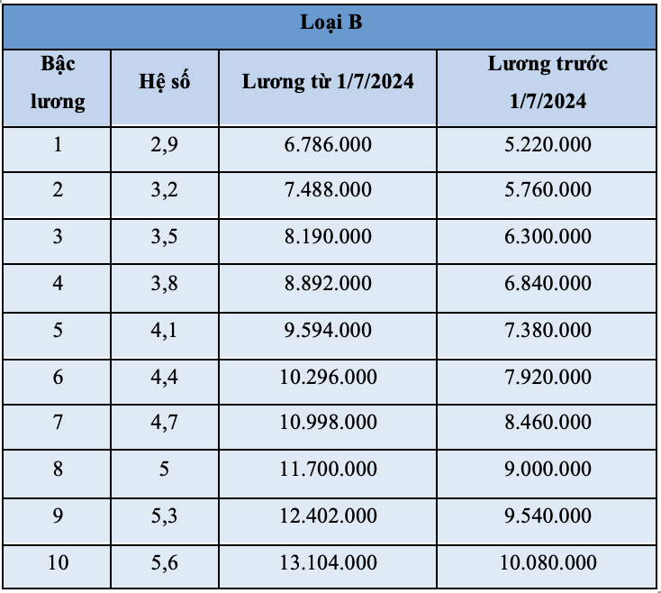 Người mang hàm đại tướng từ 1/7 được hưởng mức lương cao nhất là 24,3 triệu đồng,cao hơn lương hiện hưởng 5,6 triệu đồng. Thiếu tướng,trung tướng,thượng tướng nhận mức lương mới lần lượt là 21,1 - 21,5 - 22,9 triệu đồng.