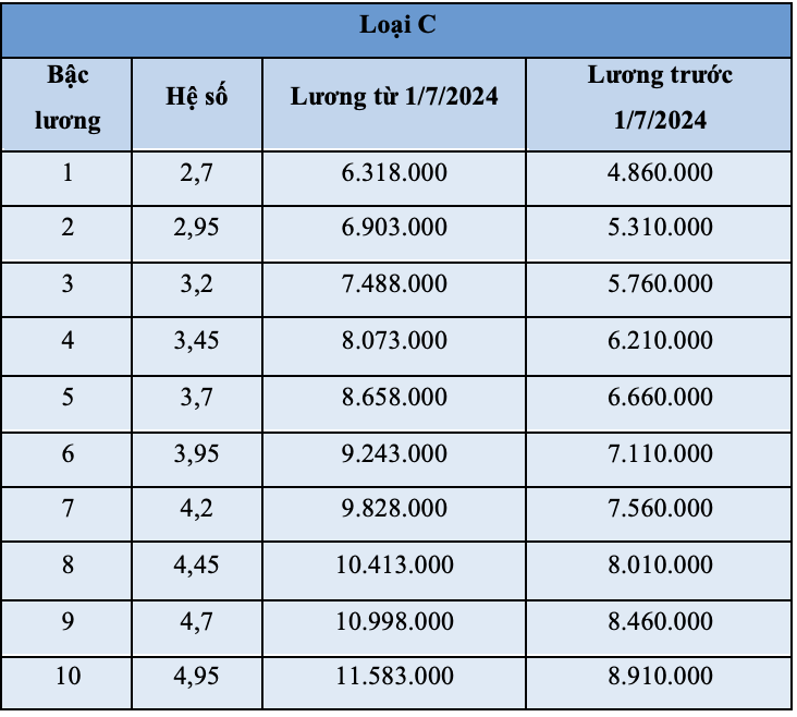 Công nhân quốc phòng bậc 1 loại C hưởng lương thấp nhất,với mức 6,3 triệu đồng.