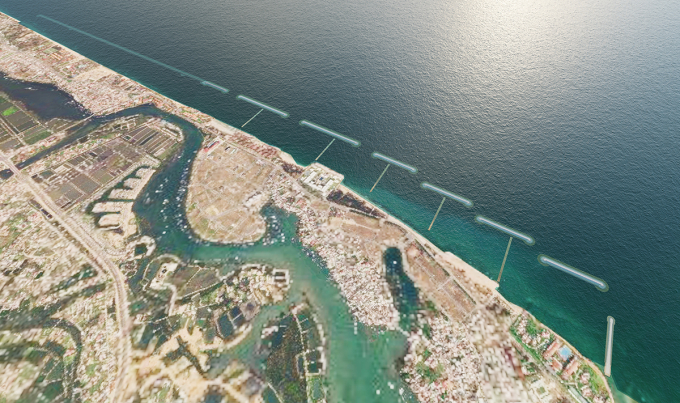 Tháng 6/2020,tỉnh xây 220 m đê ngầm âm nửa mét so với mặt nước biển,chạy song song cách bờ 250 m,vốn đầu tư 40 tỷ đồng. Đê ngầm cao trung bình 4,5 m,chân rộng 12 m,chóp rộng 1,5 m hoàn thành,song không có vốn để làm tiếp.