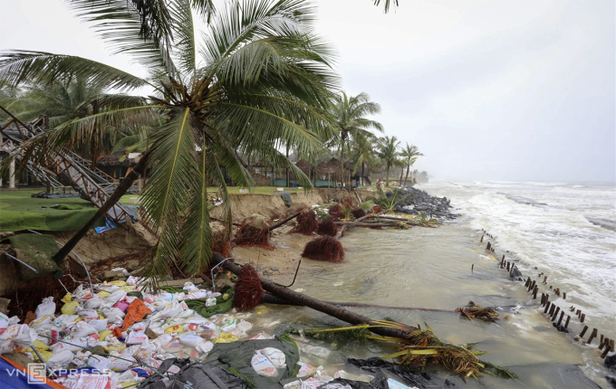 Bờ biển Cửa Đại sạt lở cuối tháng 10/2020. Ảnh: Đắc Thành