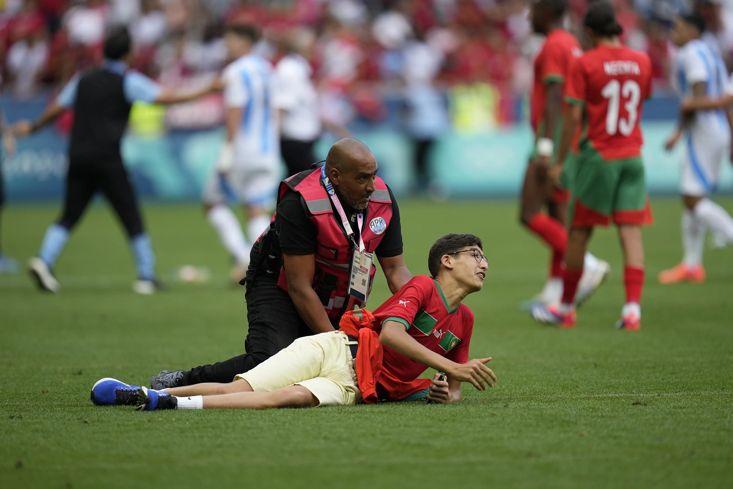Trận đấu trên sân Geoffroy-Guichard tưởng như khép lại với tỷ số hòa 2-2,nhưng VAR vào cuộc kín. Sau đó,ban tổ chức Olympic thông báo bàn thắng của Medina không được công nhận,do cầu thủ Argentina Bruno Amione việt vị khi tham gia tình huống tấn công. Sau gần hai tiếng tạm dừng,trọng tài yêu cầu hai đội vào sân đá thêm ba phút bù,trong tình trạng không khán giả. Morocco bảo toàn được lợi thế,và kết thúc trận đấu với thắng lợi 2-1.
