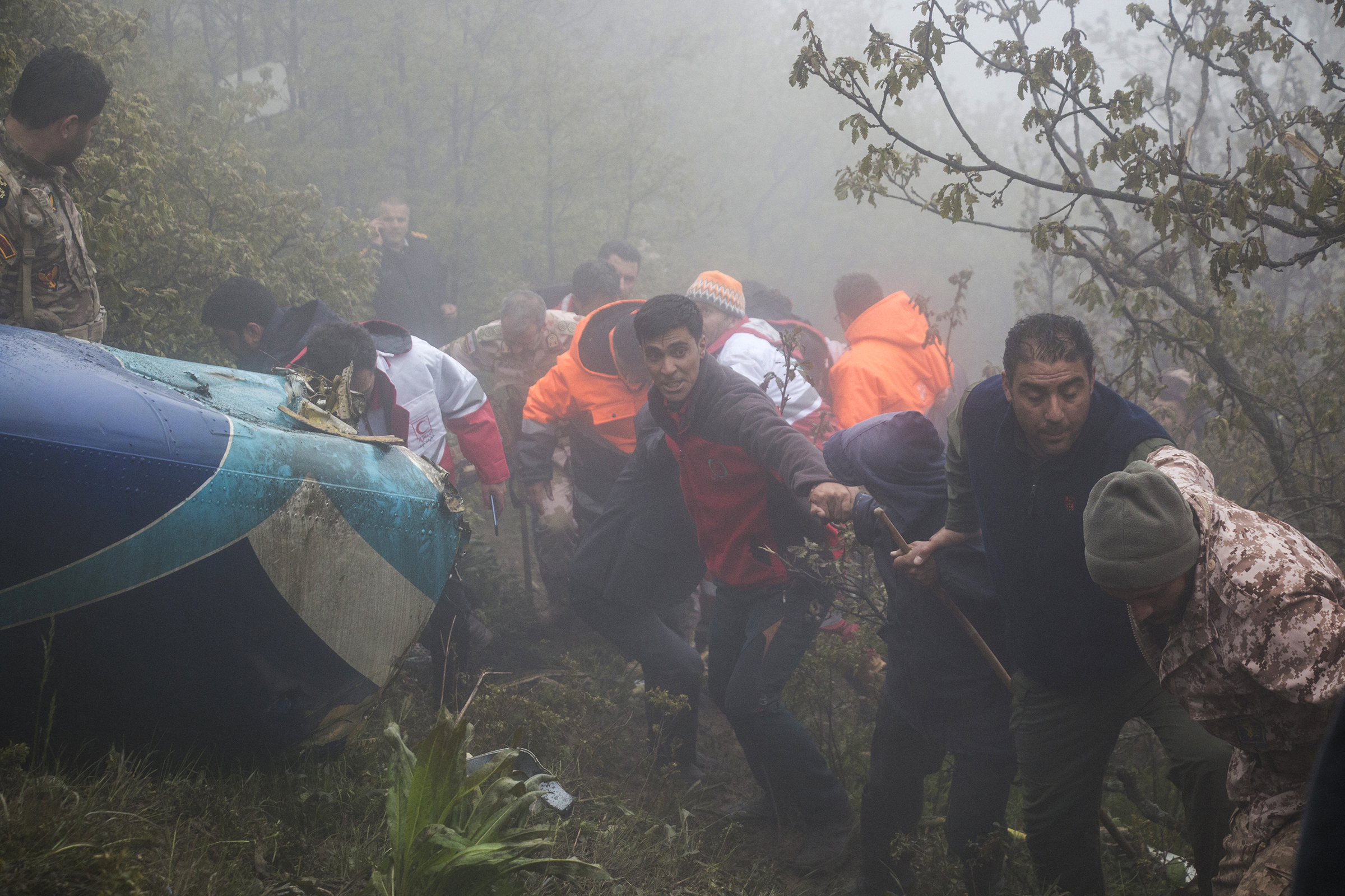 Lực lượng cứu hộ tại hiện trường vụ rơi trực thăng chở Tổng thống carrying Ebrahim Raisi ở Varzaghan,tỉnh Đông Azerbaijan,tây bắc Iran ngày 20/5. Ảnh: AFP