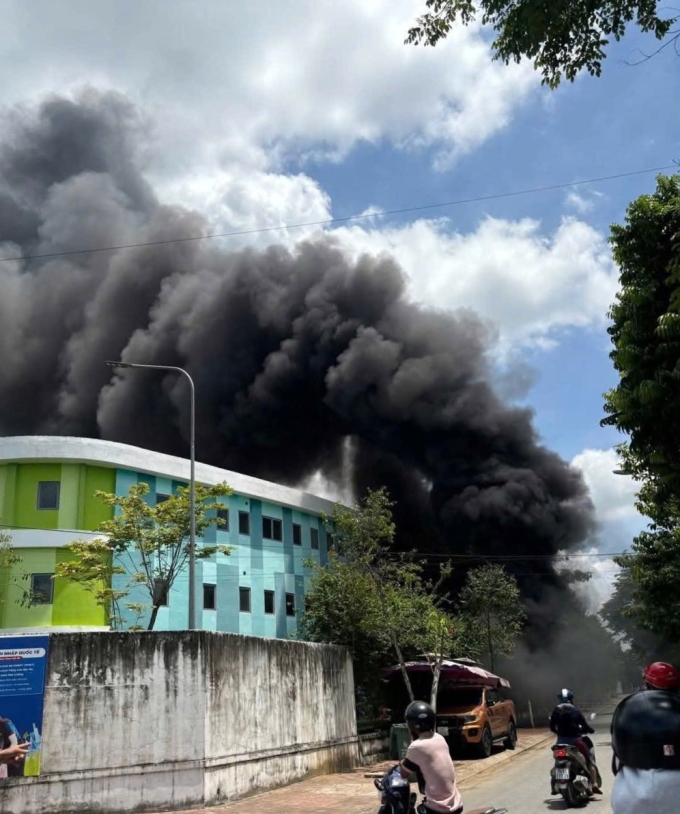 Ngọn khói cao hơn 10 mét bốc lên khi nhà xe ở trường IEC cháy. Ảnh người dân cung cấp