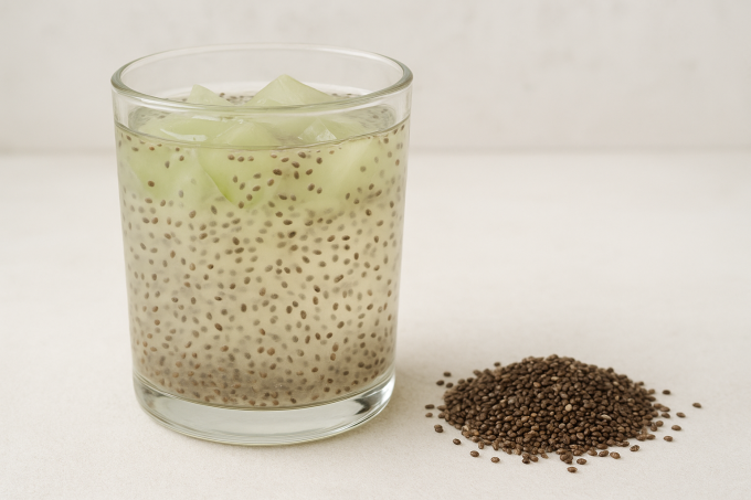Ngâm hạt chia trong nước trước khi ăn tốt cho hệ tiêu hóa. Ảnh được tạo bởi AI