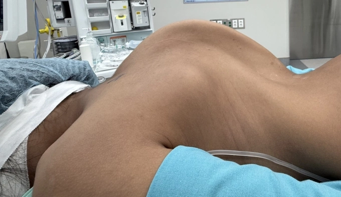 Trường hợp bé Lâm nhập viện với góc vẹo tăng nhanh từ 78 lên 104 độ chỉ trong 7 tháng,đe dọa chèn ép tủy gây liệt và suy hô hấp. Ca mổ đối diện nhiều thách thức do bệnh nhi mắc bệnh lý nhược cơ,đột biến nhiễm sắc thể và có nguy cơ sốt cao ác tính,ngưng tim hoặc rối loạn đông máu ngay trên bàn mổ. Mẹ bệnh nhi từng run rẩy không dám đặt bút ký giấy cam kết phẫu thuật.