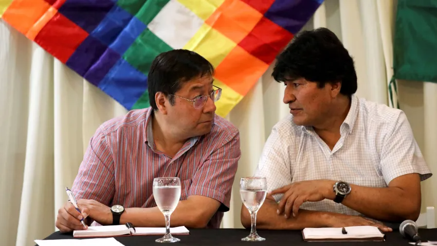 Ông Morales (bên phải) và ông Arce trong cuộc gặp ở Buenos Aires,Argentina năm 2020. Ảnh: AP