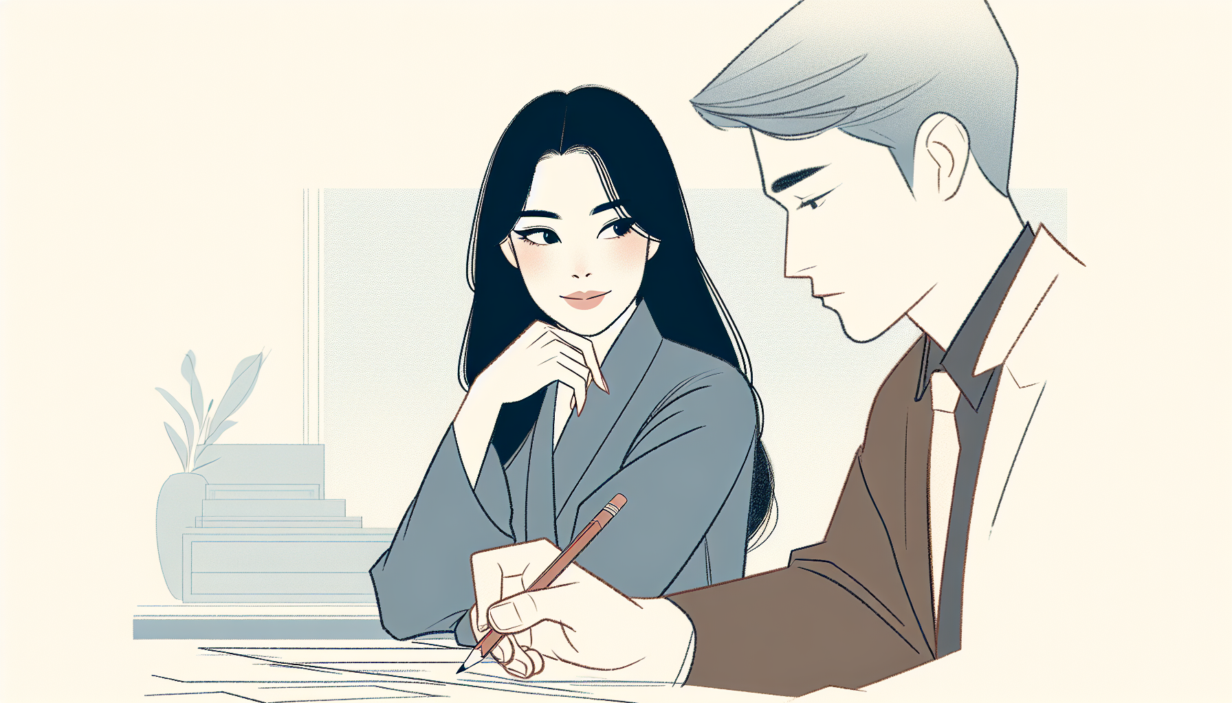 Ban đầu tôi không để ý anh lắm do anh cực kỳ hướng nội và ít chia sẻ chuyện cá nhân. Anh cũng ít chơi hay nói chuyện với những người trong văn phòng,chỉ đến làm việc rồi lẳng lặng đi về,đồng thời cũng không bao giờ tham dự các sự kiện do khoa hay trường tổ chức. Tôi thấy rõ anh rất không thoải mái với đám đông và người lạ. Một lần,do áp lực công việc,tôi đã khóc trong góc bàn của mình và tình cờ anh thấy được. Anh an ủi làm tôi thấy bất ngờ,vì một người trông lạnh như thế lại rất tinh tế và ấm áp. Có lẽ tôi bắt đầu để ý anh từ đó. Tiếp xúc nhiều hơn,tôi cảm nhận anh đàng hoàng,tự trọng,đạo đức,có lối sống lành mạnh,nhẹ nhàng,khá kỹ tính và chi tiết. Anh thích ở nhà đọc sách và dành thời gian cho gia đình. Dù không có nhiều bạn bè nhưng tình bạn của anh đều lâu dài.