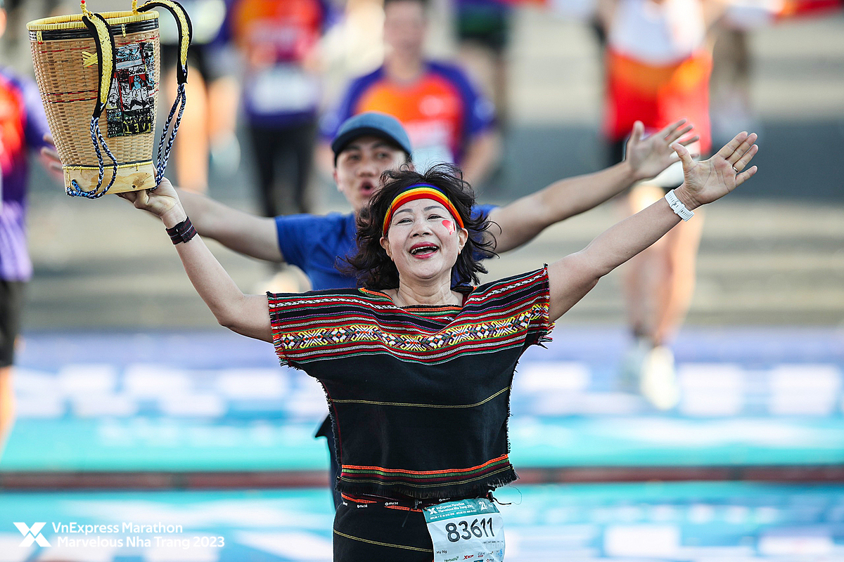 Chị Vân (60 tuổi) đến từ CLB Gia Lai Marathon về đích tại VM Nha Trang năm ngoái. Ảnh: VM