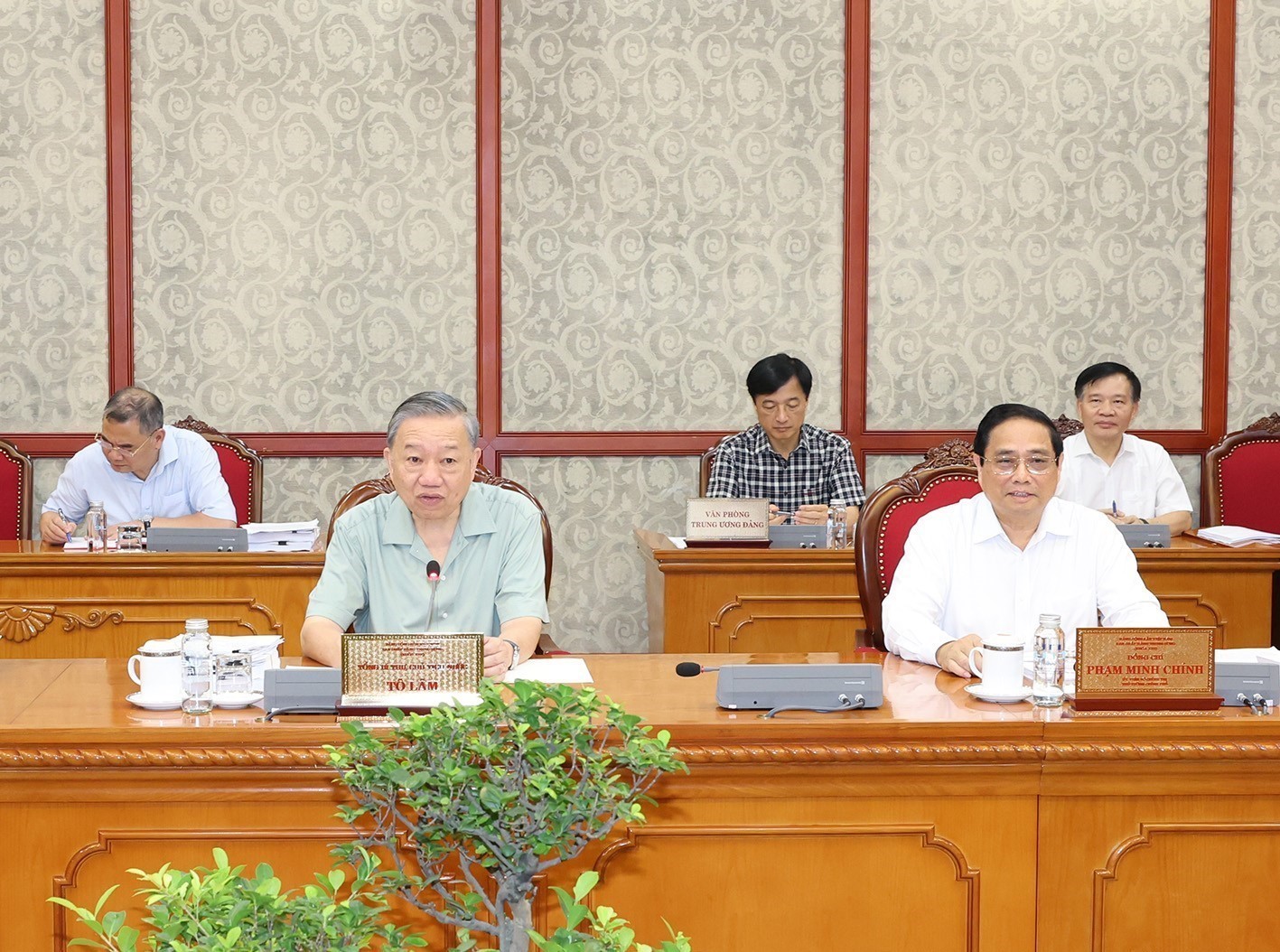 Tổng Bí thư,Chủ tịch nước Tô Lâm và Thủ tướng Phạm Minh Chính tại phiên họp. Ảnh: TTXVN