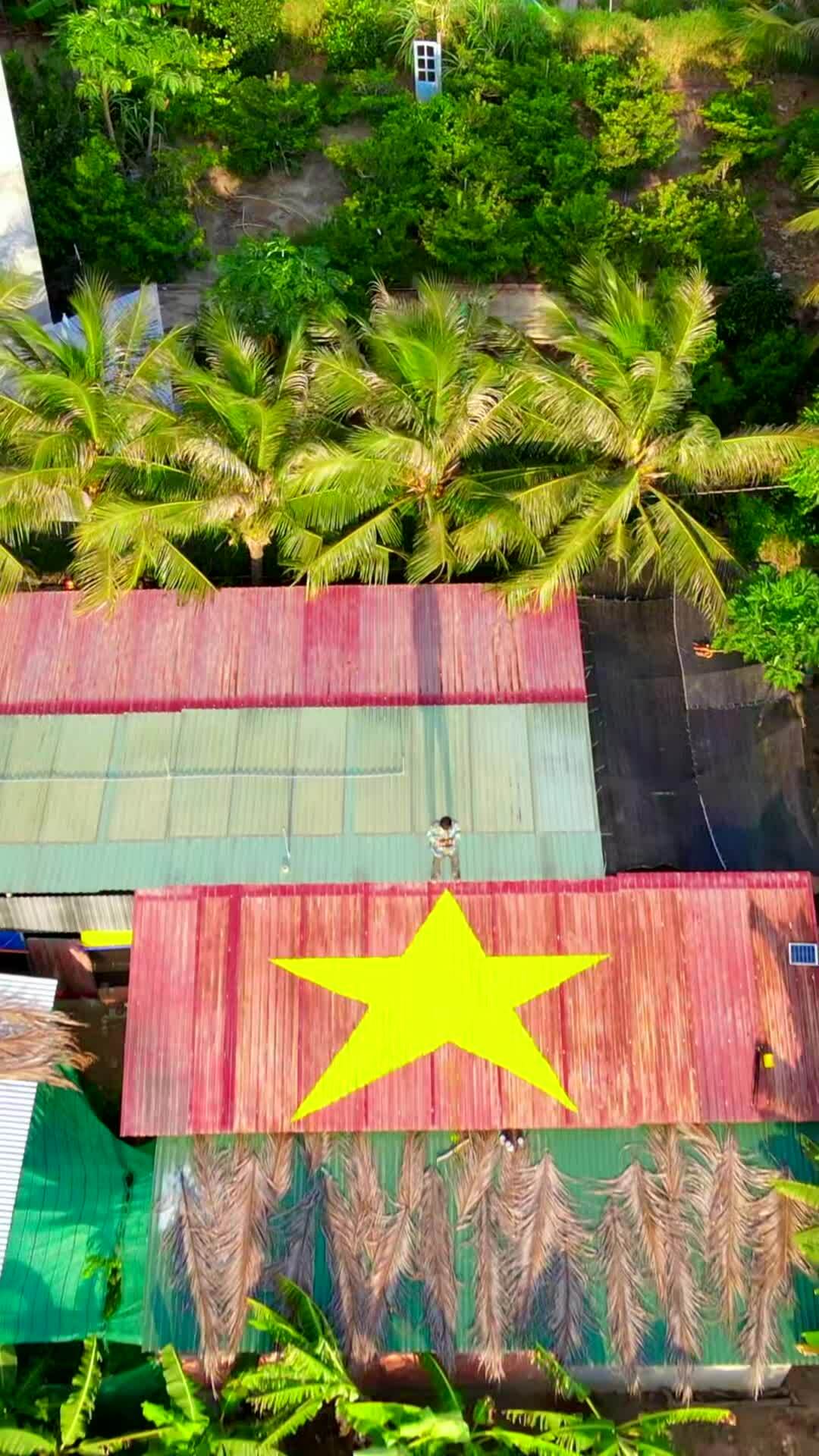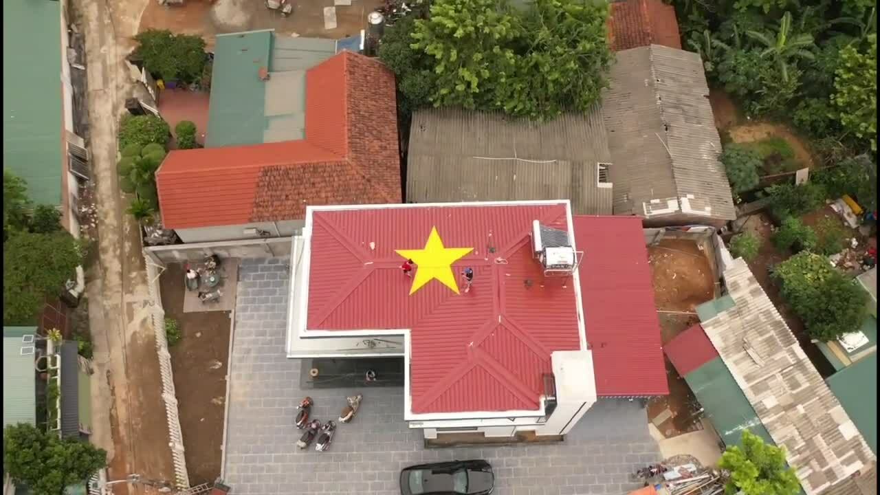 Thấy hoạt động tạo cờ tổ quốc lên mái nhà có ý nghĩa Nguyễn Văn Nam ở huyện Sóc Sơn,Hà Nội vừa thực hiện sáng 11/8. Anh cho biết do mái nhà có kích cỡ lớn nên chia làm đôi,một phần vẽ ngôi sao vàng 5 cánh,phần còn lại biểu tượng búa liềm của Đảng Cộng sản Việt Nam.
