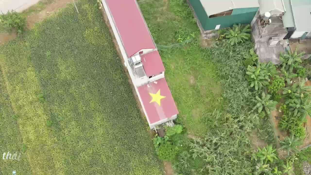 Hình ảnh lá cờ đỏ sao vàng được Nguyễn Thái Trọng thực hiện trên mái nhà của mình tại huyện Ngọc Lặc,Thanh Hóa,hôm 11/8. Nguồn: Nguyễn Thái Trọng