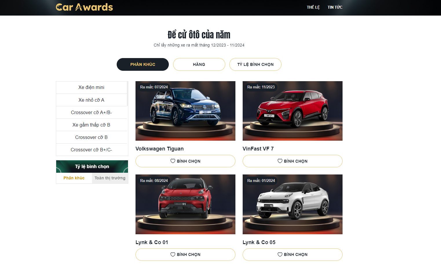 Giao diện trang bình chọn Car Awards 2024. >> Xem chi tiết